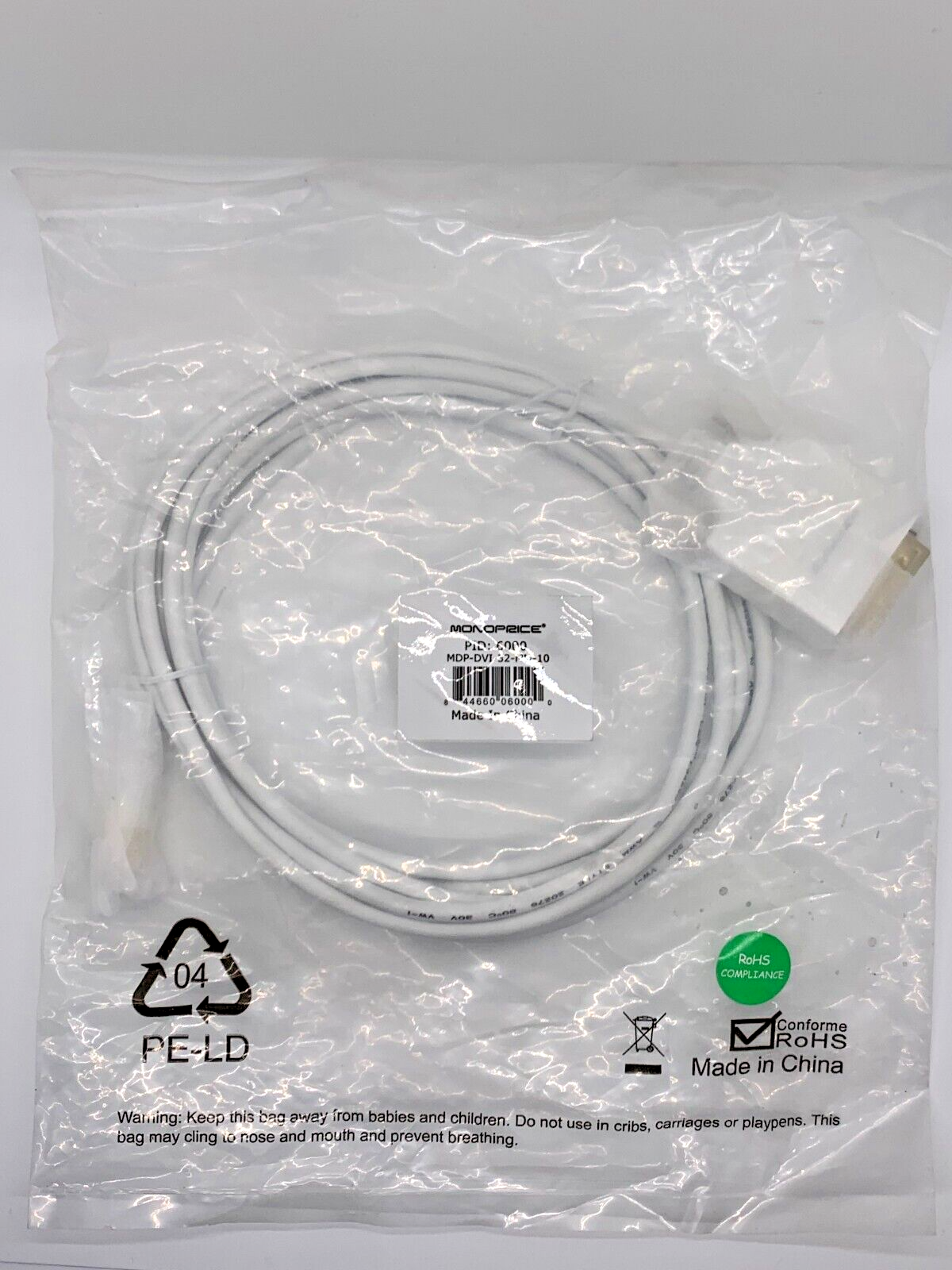 MONOPRICE MDP-DVI-32-MM-10 MINI DISPLAYPORT MALE TO DVI FEMALE 10FT 32AWG CABLE