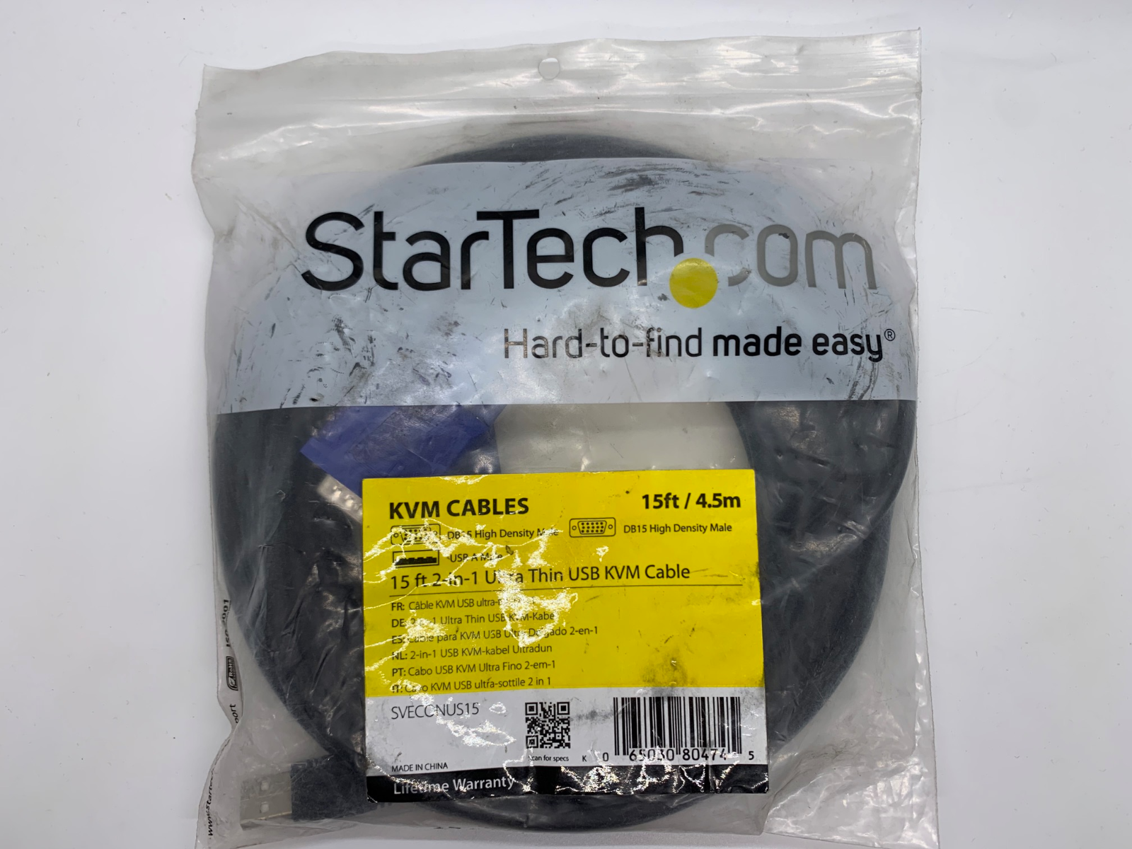 StarTech SVECONUS15 15ft 2-in-1 Ultra Thin USB KVM Cable VGA HD-15 USB to VGA